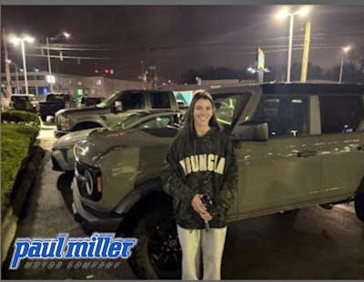 I have waited a long time to find my dream truck and Will Fox at Paul Miller Ford made the whole experience quick and easy. From test driving to finding the right trim for me he was helpful and took all of t Fox at Paul Miller Ford made the whole experience quick and easy. From test driving to finding the right trim for me he was helpful and took all of the stress of purchasing a new vehicle off my shoulders. Thank you Will for all of your time and effort! If anyone is in the market for a new vehicle I highly recommend reaching out to him. More